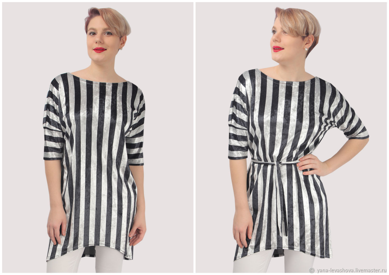 Туника платье бархатное в полоску выше колена – купить на Ярмарке Мастеров – M0K18RU | Туники, Москва