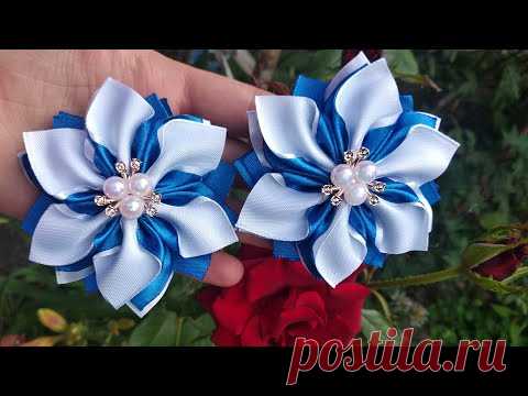 Бантики в школу школьные банты ыз атласной лент 5см белые синие бантики МК School bows Шкільні