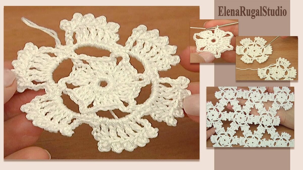 Ажурные цветочные мотивы крючком и полотно из них в видео уроке для начинающих | Студия Елены Ругаль Вязание | Яндекс Дзен