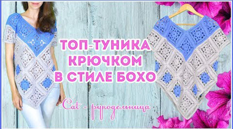 ШИКАРНАЯ ВЯЗАНАЯ ДВУХЦВЕТНАЯ ТУНИКА В СТИЛЕ БОХО ИЗ БОЛЬШИХ КВАДРАТНЫХ МОТИВОВ (Вязание крючком) Вяжем красивый топ в свободном стиле (оверсайз) из ажурных квадратных мотивов. Размер мотива 13*13 см. Мотивы сшиваются между собой швейными нитками. Топ имеет необычный крой и нестандартное со…