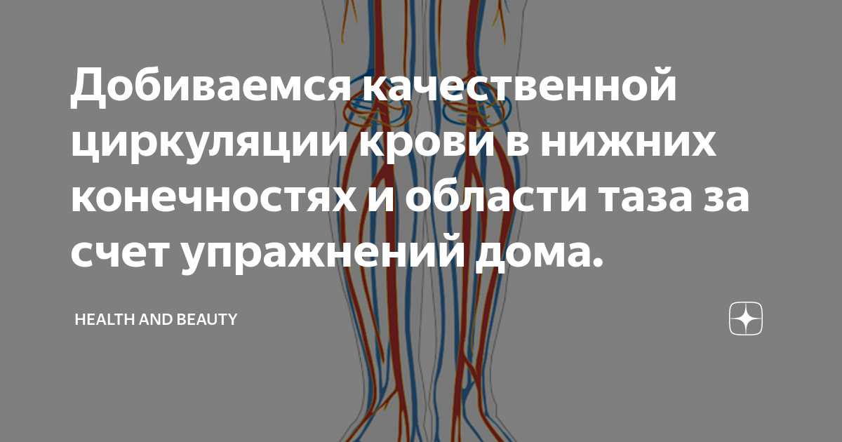 Добиваемся качественной циркуляции крови в нижних конечностях и области таза за счет упражнений дома. Важность циркуляции крови ясна каждому, но не каждый обращает внимание на первые признаки ее нарушения и уж совсем не каждый ведет профилактику появления застойных явлений в области нижних конечностей и таза.