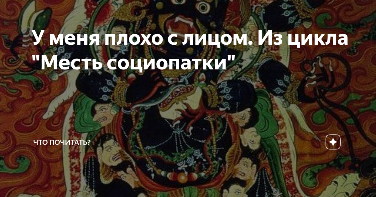 У меня плохо с лицом. Из цикла "Месть социопатки" У меня плохо с лицом. Не то чтобы очень страшная, хотя возраст красоты не прибавляет, но дело не в ней. Иду недавно по бульвару, навстречу знакомая. Поздоровались. Она участливо спрашивает: «Как самочувствие?» «Нормальное,– отвечаю,– самочувствие. А почему спрашиваешь? Из вежливости или старческие привычки обрела – при встречах говорить о здоровье?» «Не приобрела, но, видимо, пора. Гримаса у тебя