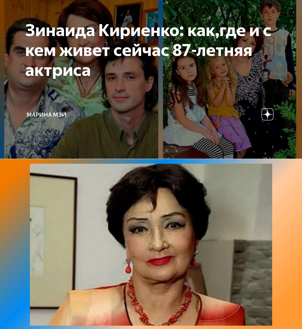 Зинаида Кириенко: как,где и с кем живет сейчас 87-летняя актриса | Марина Мэй | Яндекс Дзен