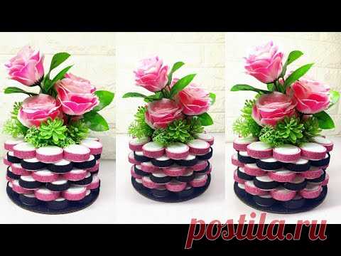 Vas bunga dari tutup botol plastik || Flower vase with Plastic bottle caps craft ideas handmade