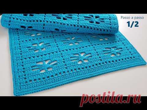 Tapete floral em crochê filé 1/2 | Passo a passo e gráfico