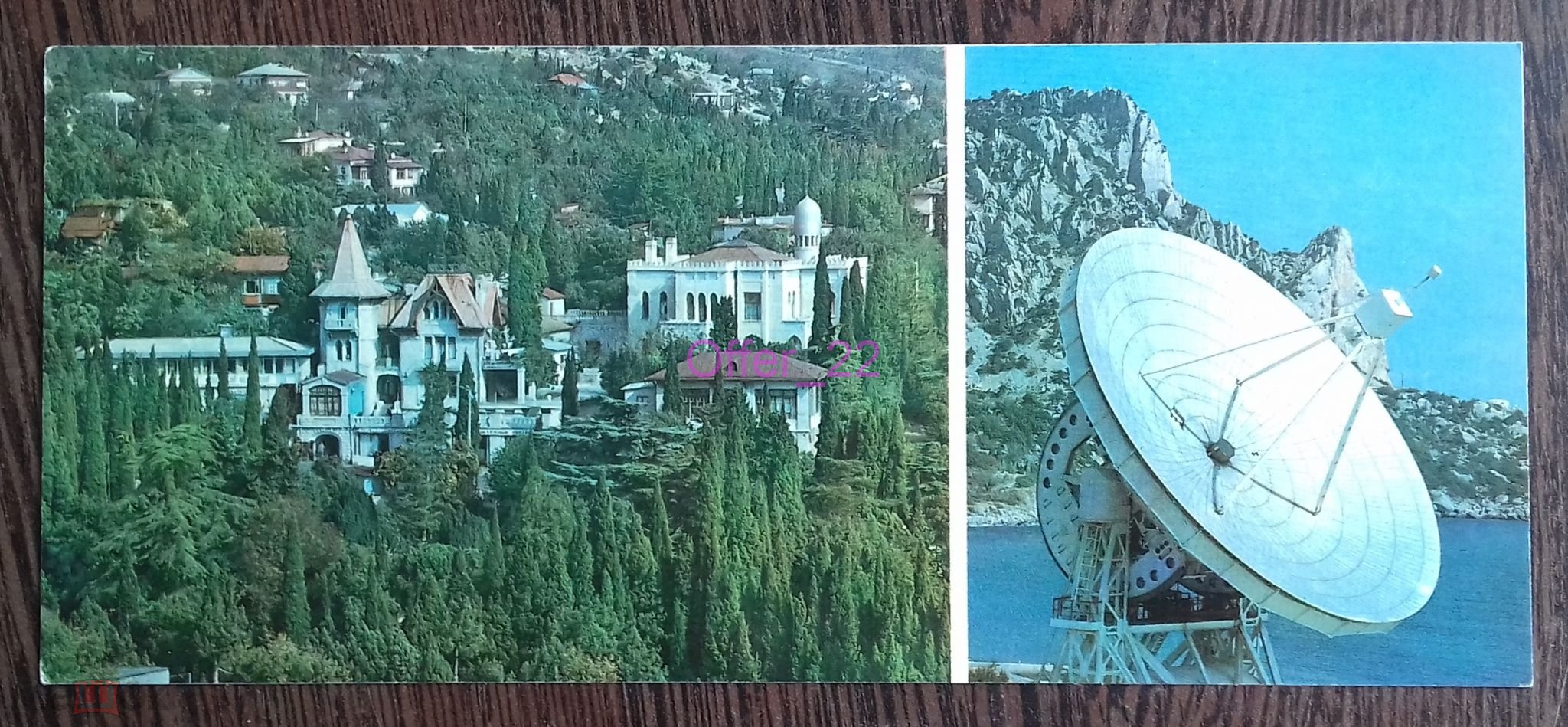 Открытка Санаторий Красный маяк в Симеизе Радиотелескоп в Кацивели Размер: 9 х 21 см. 1985 год
