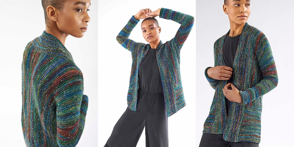 кардиган из секционной пряжи спицами
