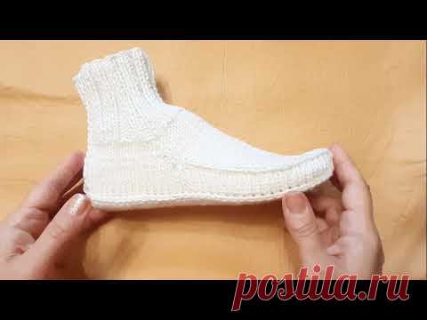 Супер белые носки двумя спицами без шва. Просто и красиво. Носки следки спицами.