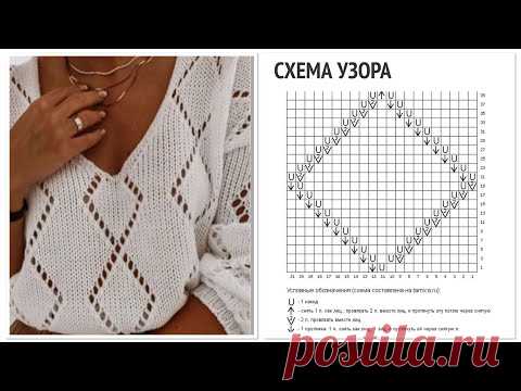 Узор спицами (+схема) ажурные большие ромбы для летних топов, джемперов, кофточек и кардиганов.