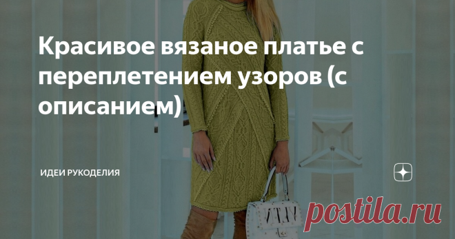 Красивое вязаное платье с переплетением узоров (с описанием) Изюминкой этого оригинального платья служат - переплетение узоров, косые линии и отделка крючком пряжей на тон светлее.