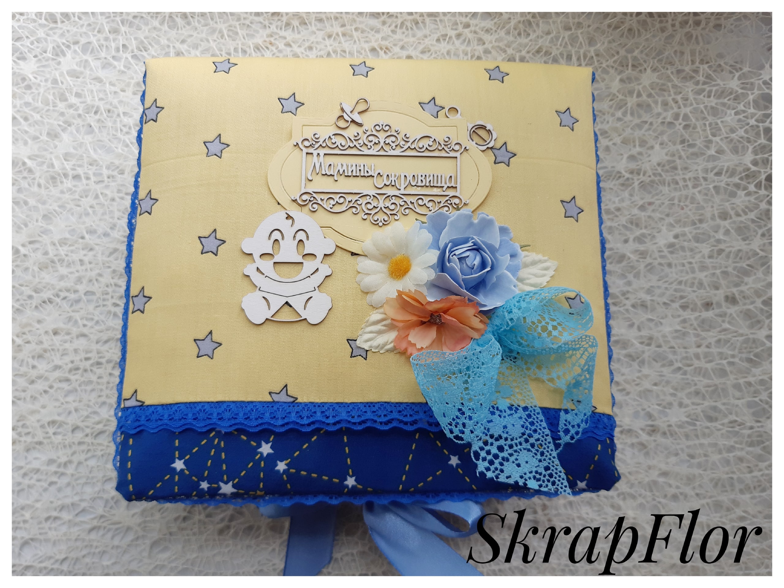 Мамины сокровища для мальчика. Размером 20,5 на 22 см. Крышка маминых сокровищ мягкая - синтепух, обтянута тканью. В коробочке есть маленькие коробочки под :мамины сокровища , бирку, зубик и локон.