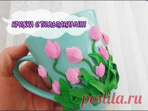 КРУЖКА С ТЮЛЬПАНАМИ * ПОЛИМЕРНАЯ ГЛИНА * МАСТЕР-КЛАСС * DIY