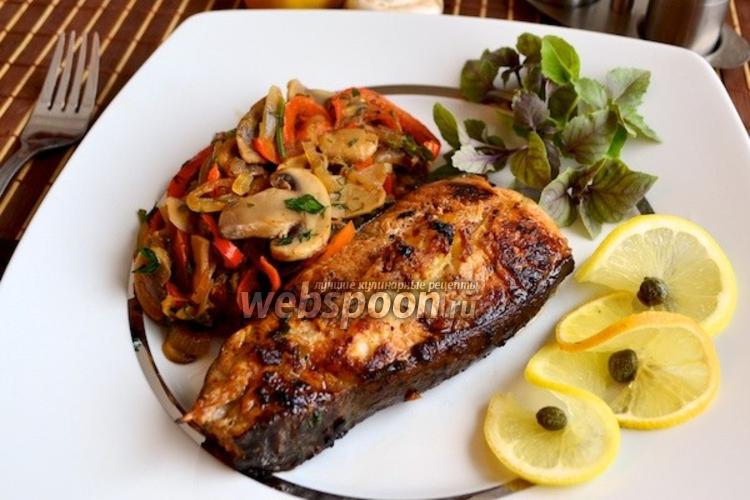 Стейк сома с овощами