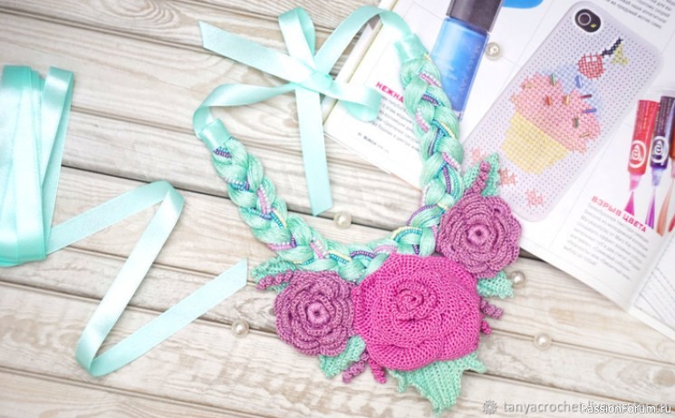 Колье с вязаными элементами «розы». МК Т.Матиясевич | Вязаные крючком аксессуары АВТОР Татьяна Матиясевич