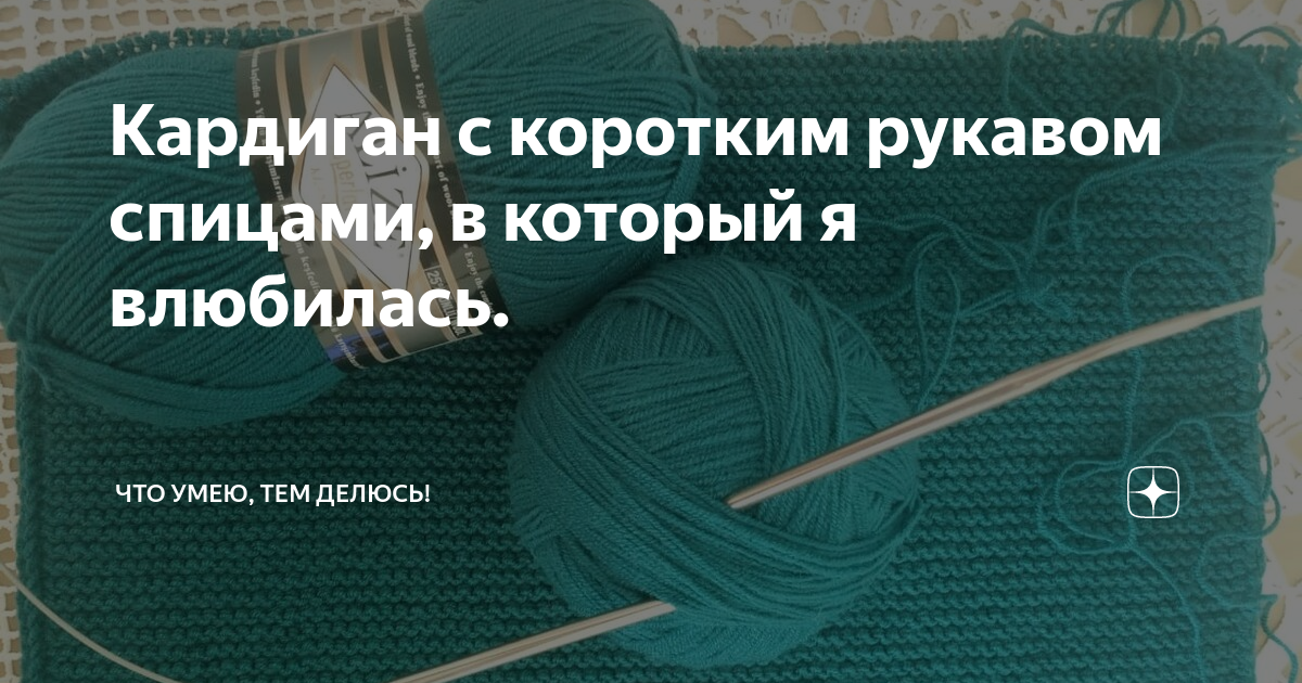 Кардиган с коротким рукавом спицами, в который я влюбилась. Здравствуйте, дорогие мои рукодельницы! Хочу представить свой новый проект. Это кардиган с коротким рукавом, а может и с длинным я еще не решила. А вообще планируется в три четверти. Этот кардиган я увидела делая одну из подборок. Он мне очень понравился и я решила его связать. Вот делюсь что из этого получается.
