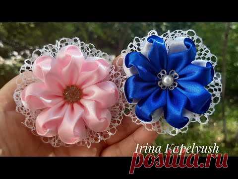 Цветы из ленты 2.5 см. Цветы из атласа . Мк канзаши .Flowers from a ribbon.Flores de cinta.