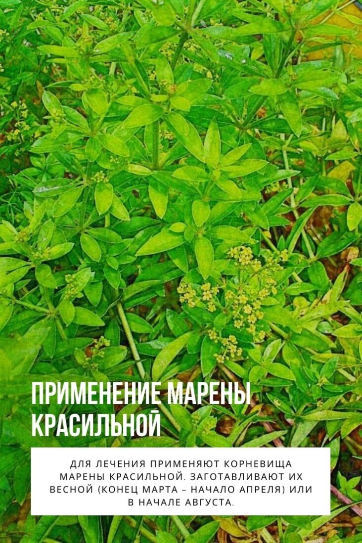 Применение марены красильной. Марена красильная (марина, марзана, крап)- семейства мареновых. Это многолетнее травянистое растение. Стебли ветвистые в высоту могут достигать до 1,5 метров. Корневище длинное горизонтальное. Листья парные колючие, шероховатые. Цветки мелкие соединены в многоцветные метелки. Цветет марена красильная в июне. Плод мясистый, костянковидный. Плоды созревают в сентябре.