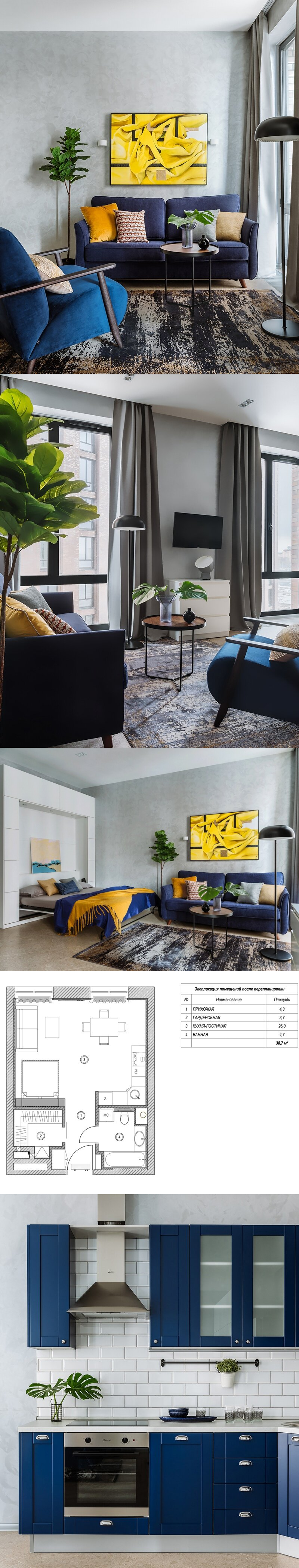 Окна в пол и откидная кровать: действительно стильный интерьер студии площадью 39 м² | Architect Guide | Яндекс Дзен