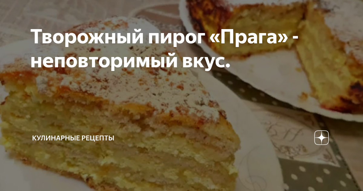 Творожный пирог «Прага» - неповторимый вкус. Нежнейший десерт к чаю, который просто тает во рту. Такое лакомство украсит не только семейный праздник, но также, званый ужин с дорогими гостями. Приготовить такой пирог сможет каждая хозяйка. Берите на заметку и радуйте близких вкуснейшей выпечкой к чаю. Рекомендую. кулинарные рецепты Приготовление:
