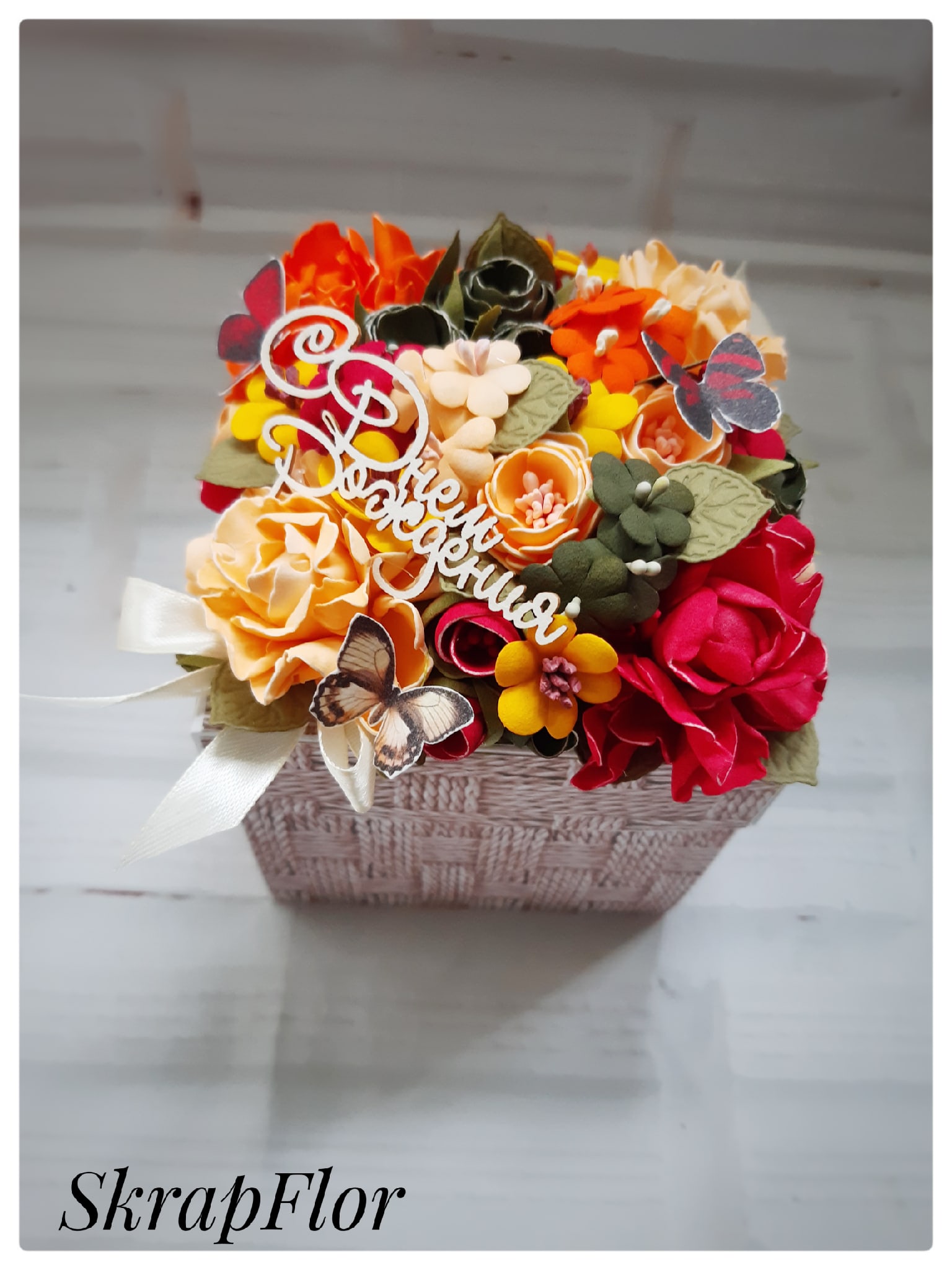 Коробочка размером 10 на 10 см. Украшена объемным декором. Четыре поздравления + место для денежного подарка)🤗 Под заказ возможны другие вариации)