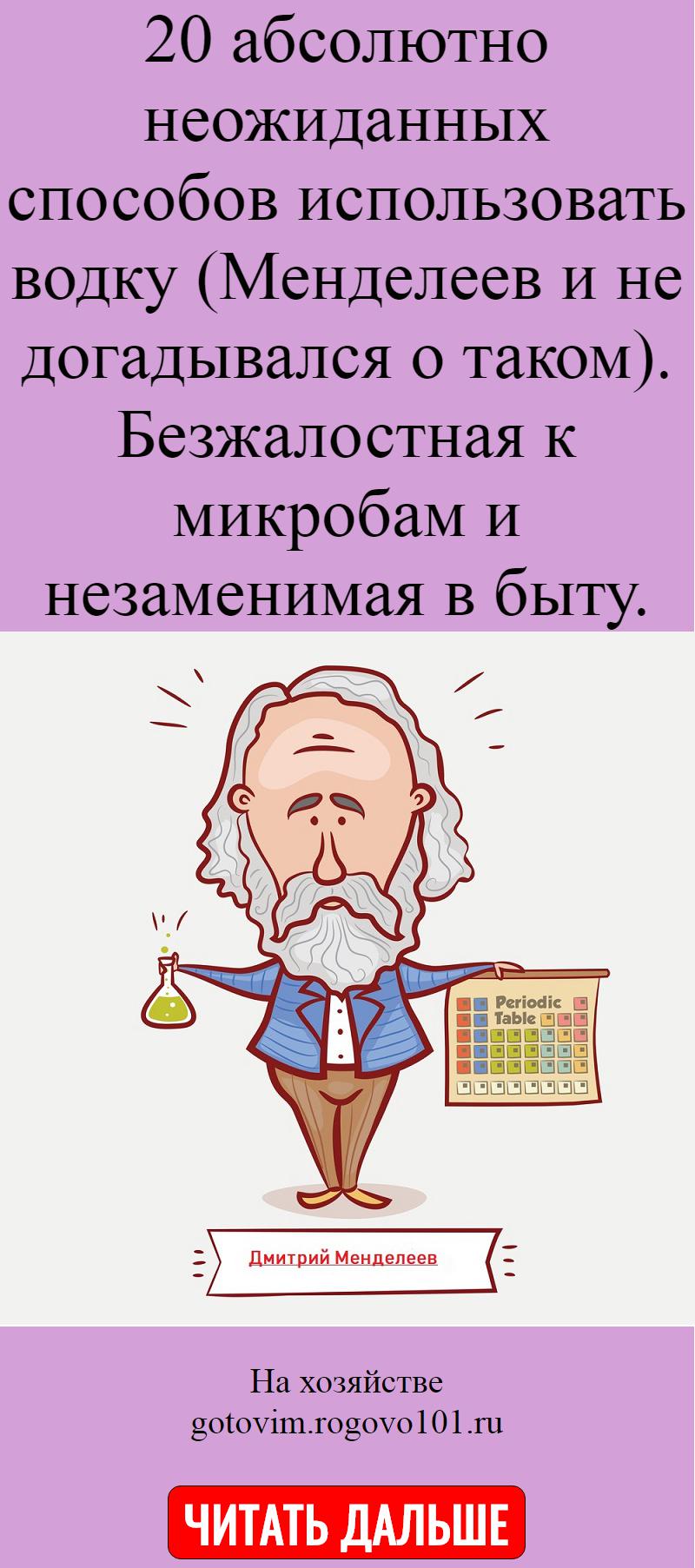 20 абсолютно неожиданных способов использовать водку (Менделеев и не догадывался о таком). Безжалостная к микробам и незаменимая в быту.