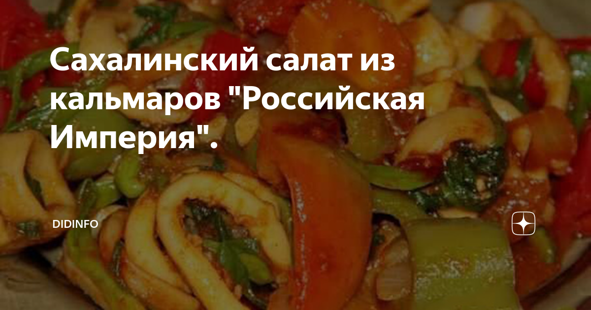 Сахалинский салат из кальмаров "Российская Империя". Говорят, что у этого салата очень интересная история. О её правдивости судить не буду, за что купила, за то и продаю. Но салат, действительно, вкуснейший, хоть и не совсем такой, к которому мы привыкли. Известно, что во время русско-японской войны 1905 года обороной Сахалина руководил (в числе 4-х других командующих) потомственный вятский дворянин, бравый полковник Иосиф Алоизович Арцишевский. К