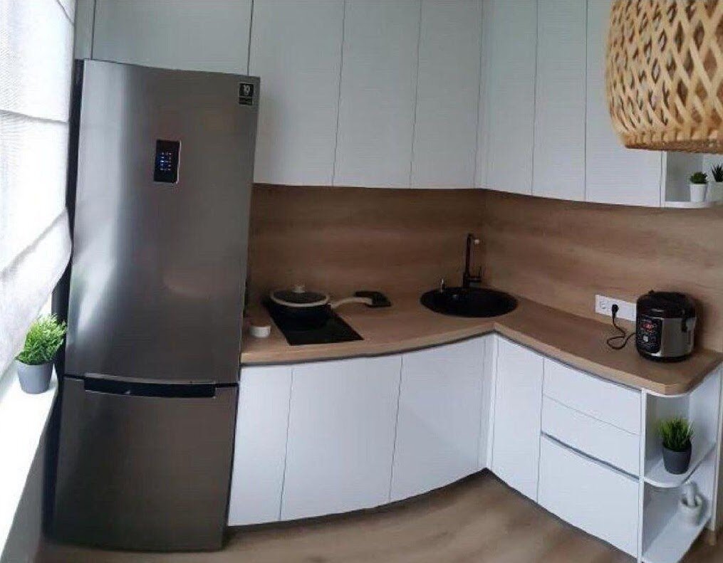 Уютная кухня-малютка в современном стиле с идеально расставленной техникой | Mebel.ru | Яндекс Дзен