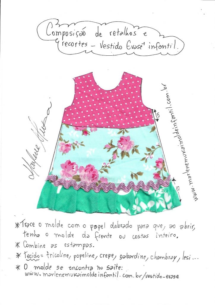 Doze idéias para aproveitar retalhos na confecção de vestido evasê – DIY- marlene mukai – molde infantil
