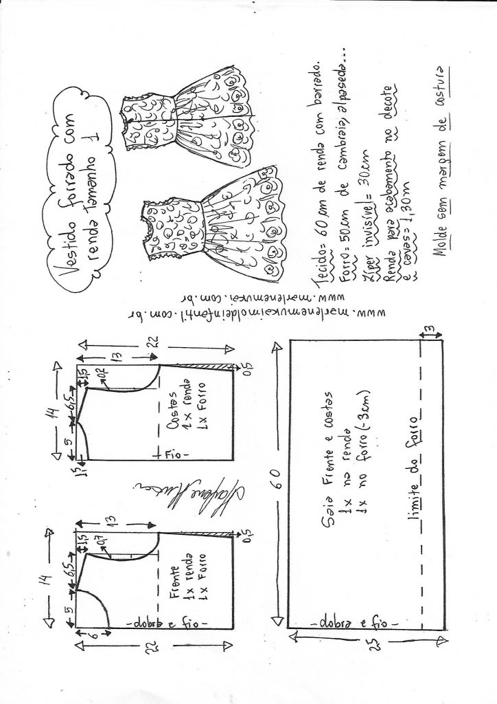Vestido com renda forrado – DIY- marlene mukai – molde infantil