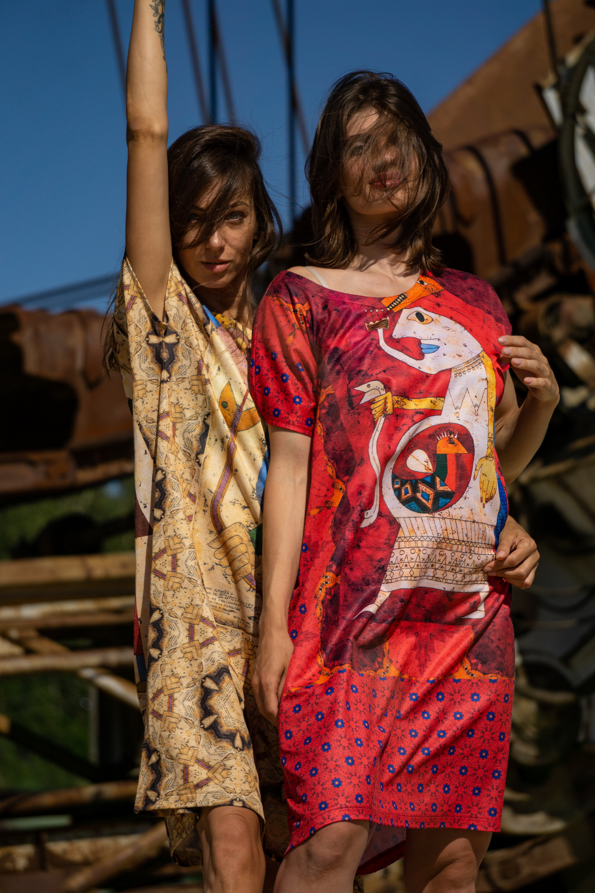 Футболки и платья из коллекции СЮР-РЕАЛЬНОСТЬ с принтами по мотивам живописи художника сюрреалиста Виктор Браунера.