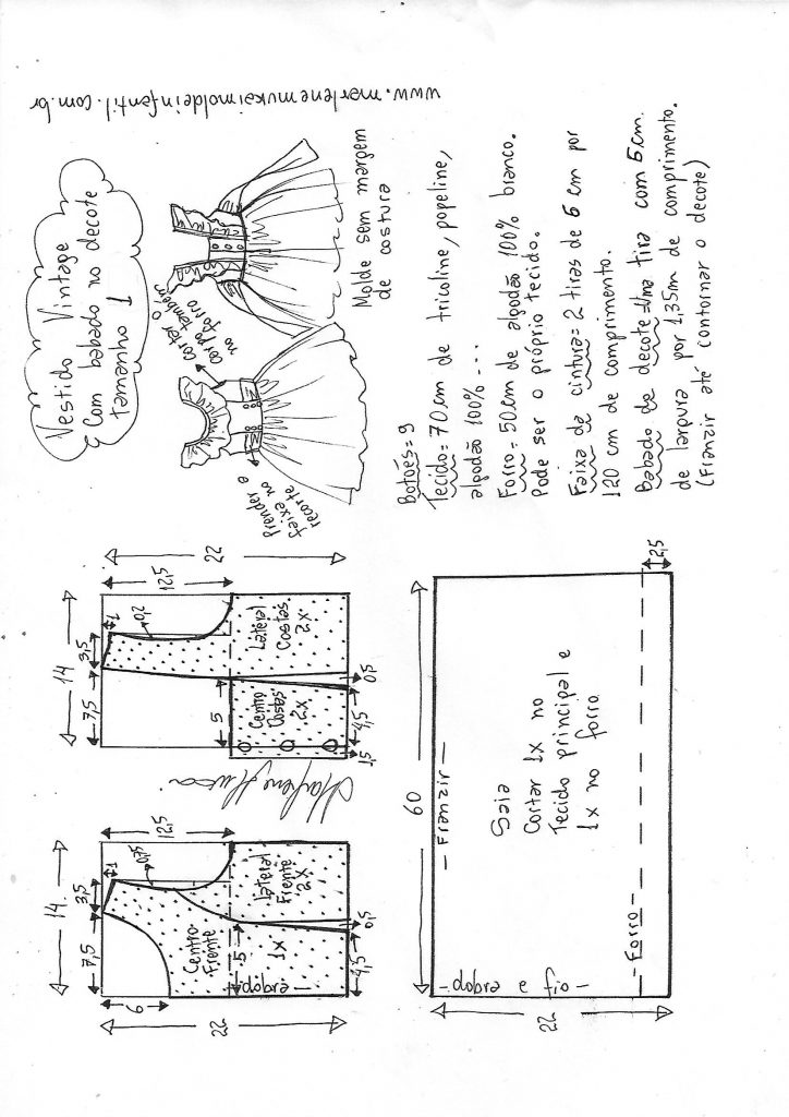 Vestido vintage com babado no decote – DIY- marlene mukai – molde infantil