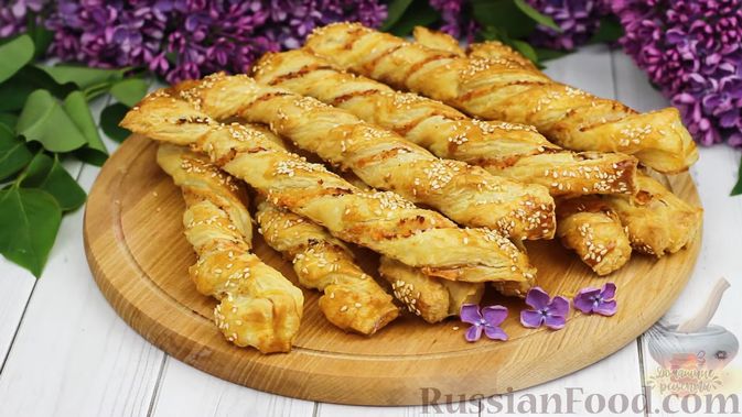 Рецепт: Слоёные палочки-спиральки с ветчиной и сыром на RussianFood.com