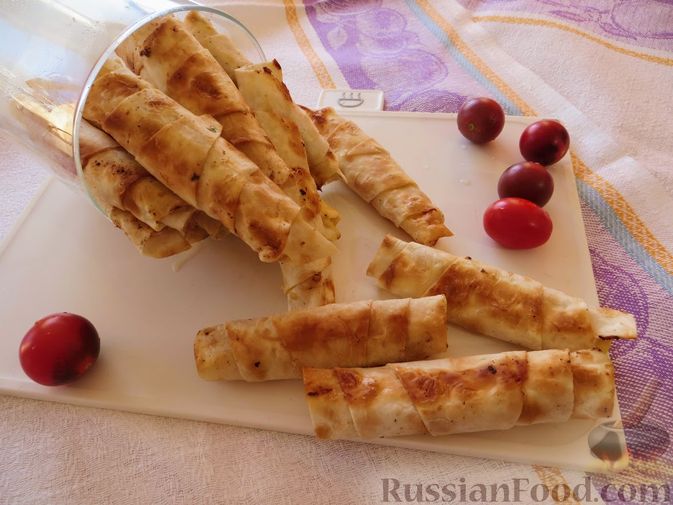 Рецепт: Трубочки из лаваша с мясом, помидорами и сыром на RussianFood.com