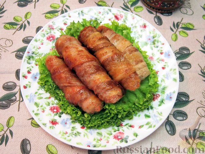 Рецепт: Закусочные рулетики из бекона, хлеба и сыра на RussianFood.com