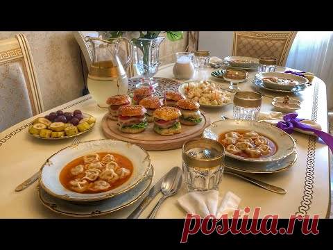 УЖИН ДЛЯ МОИХ ПОДРУГ ❤️ УЖИН ЗА 1,5 ЧАСА , ПЕЛЬМЕНИ В БУЛЬОНЕ 😍 МИНИ БУРГЕРЫ 🍔. ВКУСНО ПОЕЛИ 😋