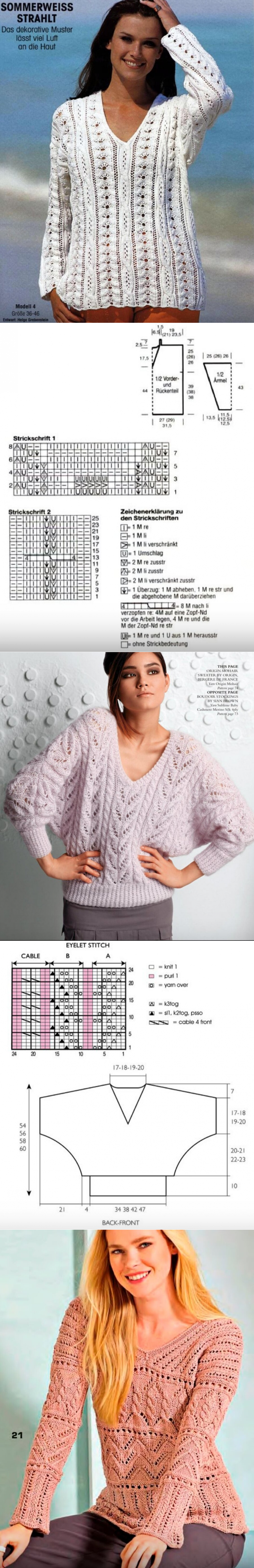 Подборка очень красивых пуловеров с V-образным вырезом + мастер-класс объёмного узора спицами. | Asha. Вязание и дизайн.🌶 | Яндекс Дзен