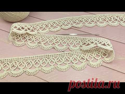 ЛЕНТОЧНОЕ КРУЖЕВО вязание КАЙМА крючком мастер-класс Crochet Tape Lace Tutorial