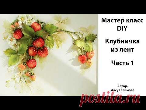 Вышивка лентами клубники Часть1 Тонировка фона и вышивка цветов Ribbon embroidered strawberries DIY