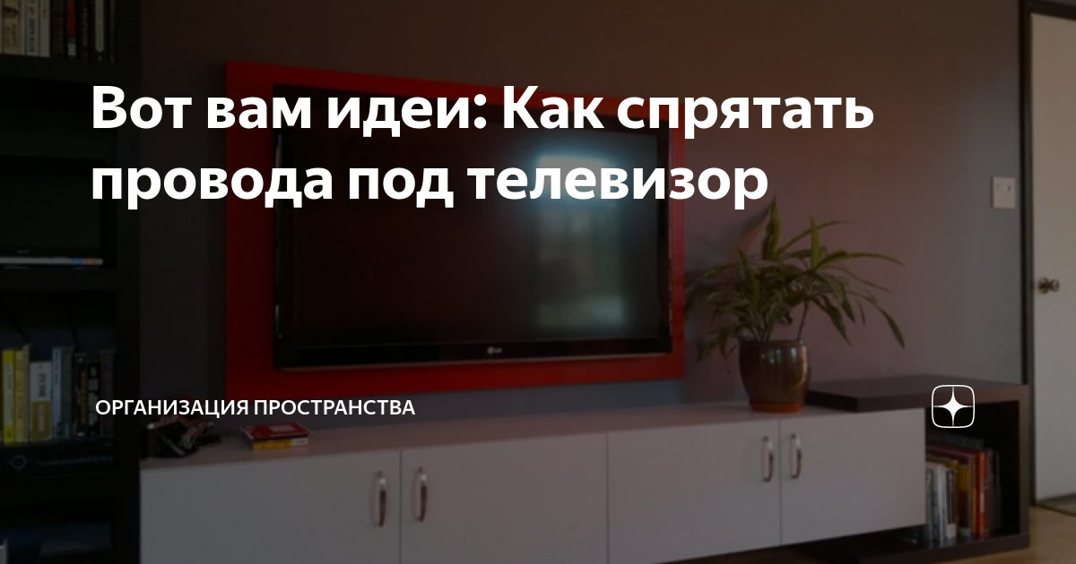 Вот вам идеи: Как спрятать провода под телевизор Всем доброго времени суток! Часто мы сталкиваемся с такой проблемой, когда ремонт сделан, телевизор весит на стене, но вот, что же делать с проводами висящими на стене. Конечно самый распространённый вариант, это убрать провода в штробы. Но такой вариант больше актуален в том случае если у вас ремонт в начале процесса и у вас есть чётко составленный план по расстановке мебели и техники. Что же