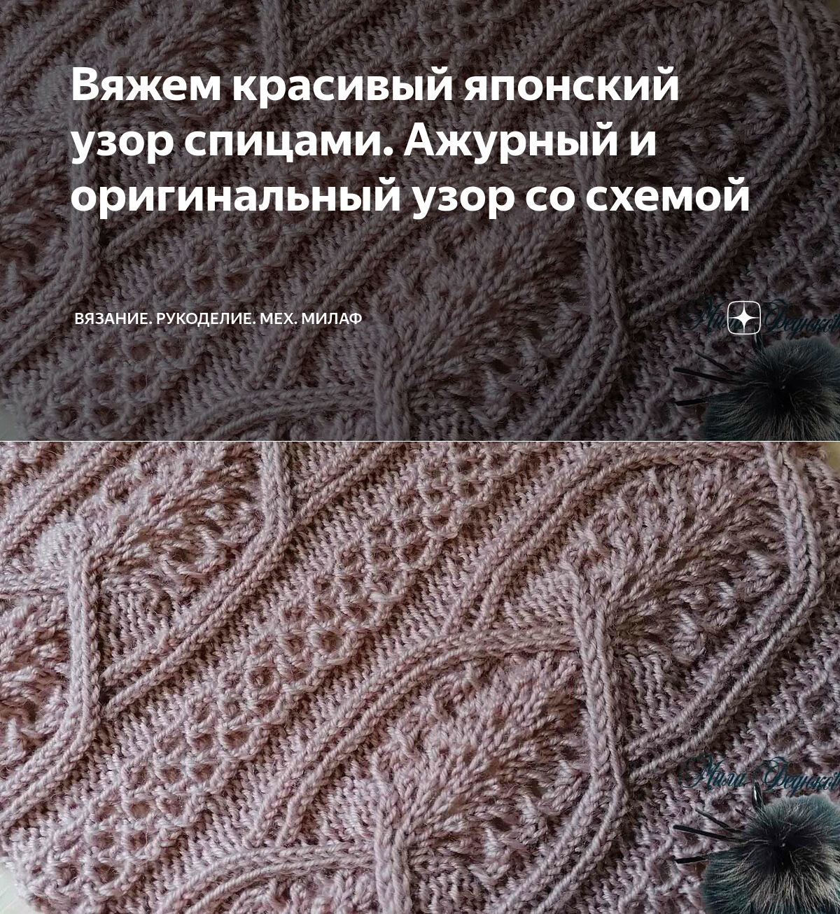 Вяжем красивый японский узор спицами. Ажурный и оригинальный узор со схемой | Вязание. Рукоделие. Мех. МилаФ | Яндекс Дзен