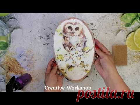 🦉 СОВА🦉 ВЖИВЛЕНИЕ КАРТИНКИ В СПИЛ ДЕРЕВА🦉 МАСТЕР КЛАСС🦉 ДЕКУПАЖ🦉