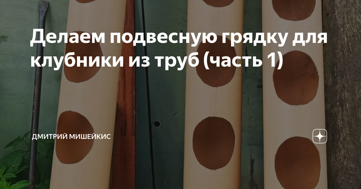 Делаем подвесную грядку для клубники из труб (часть 1) Жена решила посадить клубнику, но не в простую, а в золотую грядку. Золотую, если посчитать затраты на покупку канализационных труб, из которых делается такая грядка, на покупку профильного металла, чтобы собрать или сварить подставку под трубы. Но дурак (это я про себя)