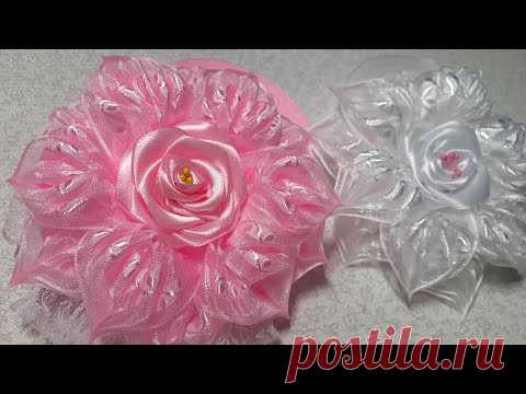 Пышный и нежный цветок из органзы. Канзаши. Kanzashi