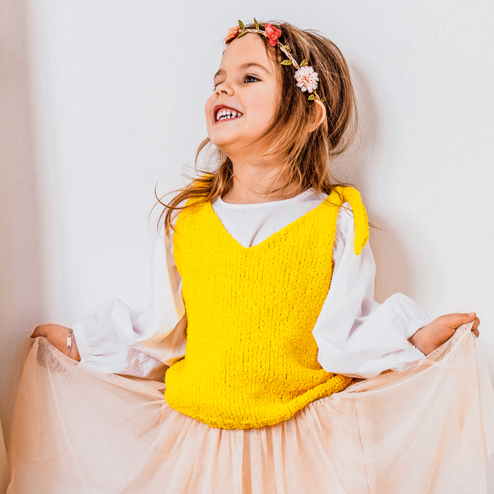 Желтый топ на завязках - схема вязания спицами с описанием на Verena.ru