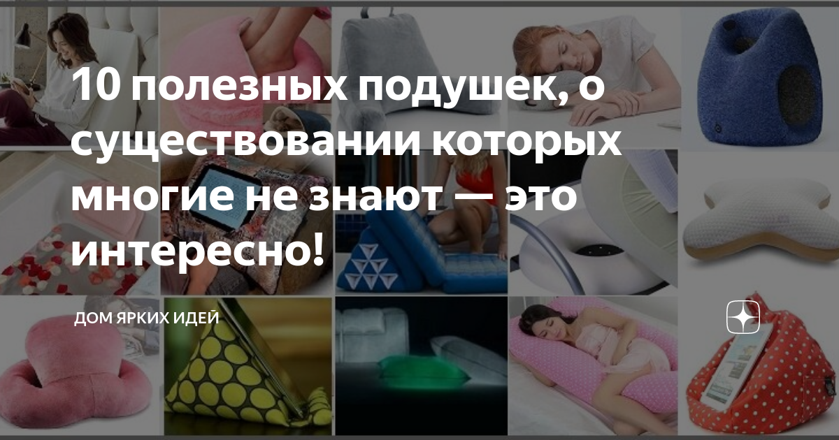 10 полезных подушек, о существовании которых многие не знают — это интересно! Подушки для сна и декоративные для интерьера — вот, пожалуй, и весь ассортимент, который приходит на память многим из нас при упоминании о подушках. Тем, кто много путешествует, может еще знакома подушка для путешествий. Помимо этих трех модификаций существует еще как минимум 10 полезных моделей, о существовании которых многие даже не догадываются!
