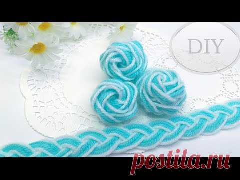 Розы из пряжи БЕЗ спиц и крючка ( самый легкий способ)