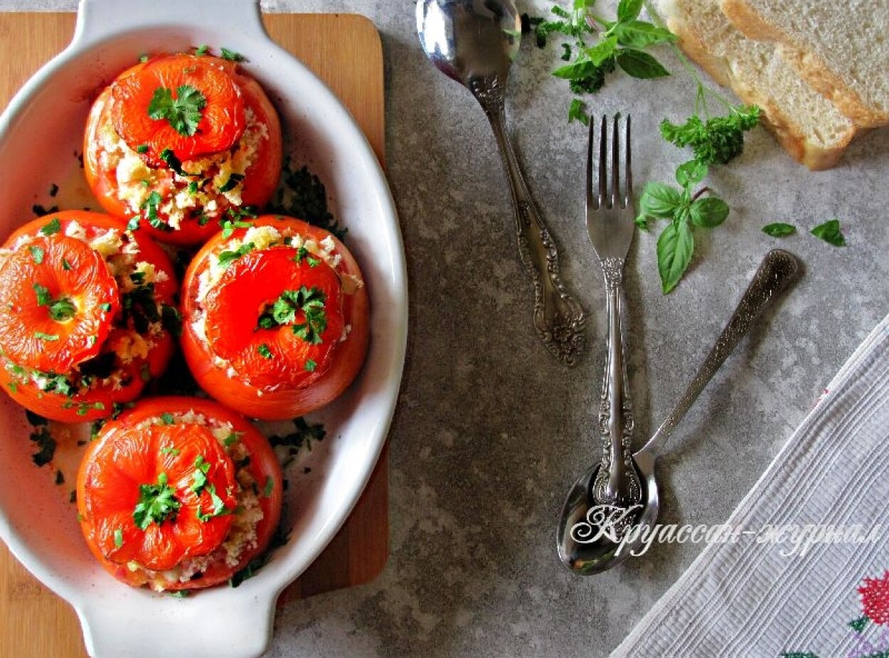 Пошаговый рецепт с фото: запеченные помидоры, фаршированные свиными сардельками, чесноком и горчицей.