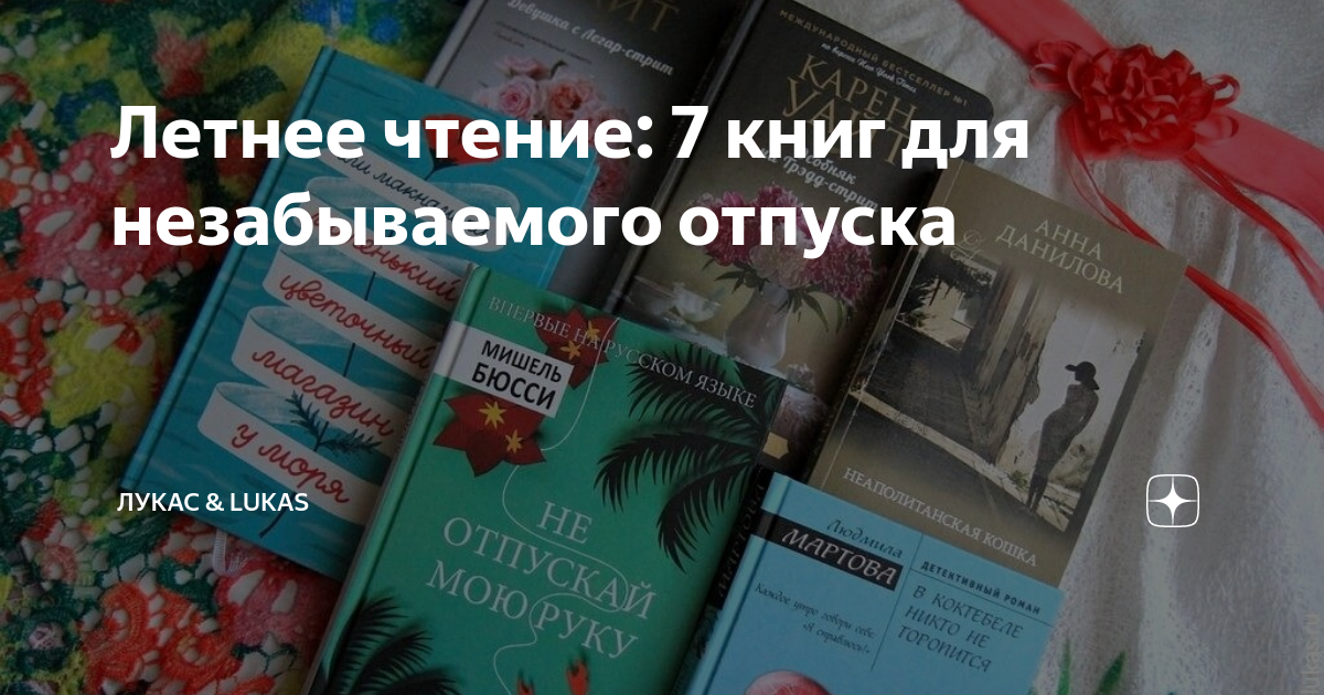 Летнее чтение: 7 книг для незабываемого отпуска Что взять почитать в отпуск, на дачу, в дорогу, путешествие? С какой книгой провести интересно выходной дома под шум дождя? Я составила список тех книг, которые могу рекомендовать не по чужим отзывам, а по своим собственным впечатлениям.