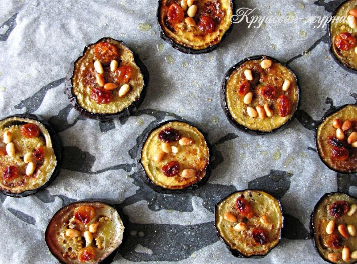 Оригинальный и неприевшийся рецепт: баклажаны, запеченные с изюмом и кедровыми орешками.