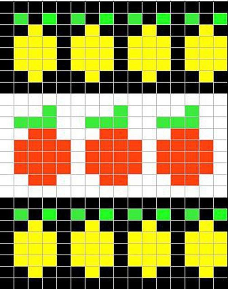 Lemons and oranges chart Knitting pattern by Sandra Jäger This pattern was coming to my mind on a bus trip... As I've seen patterns with strawberries and Co before I thought it was time to add some oranges and lemons, too.I think if you use orange as background colour for the lemon and yellow for the orange this pattern will even look better.